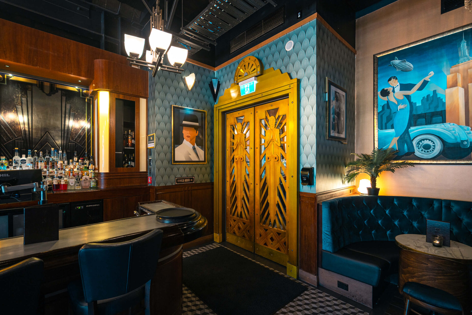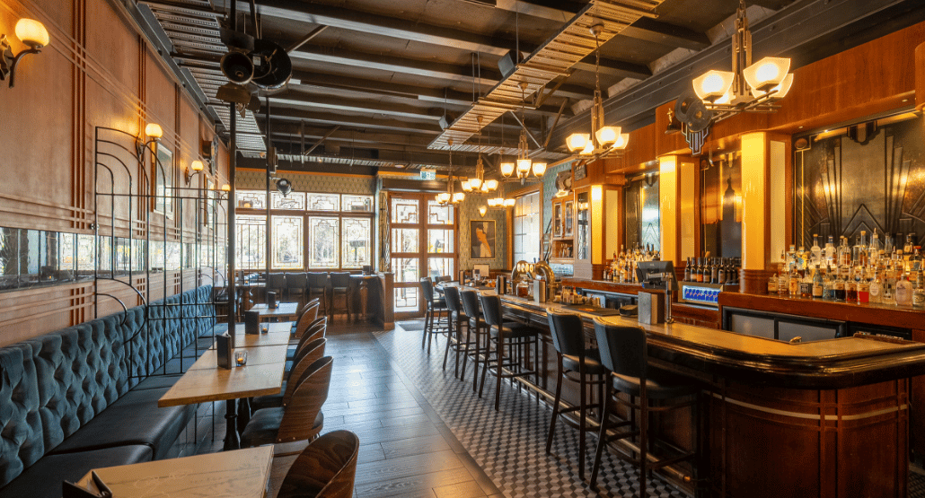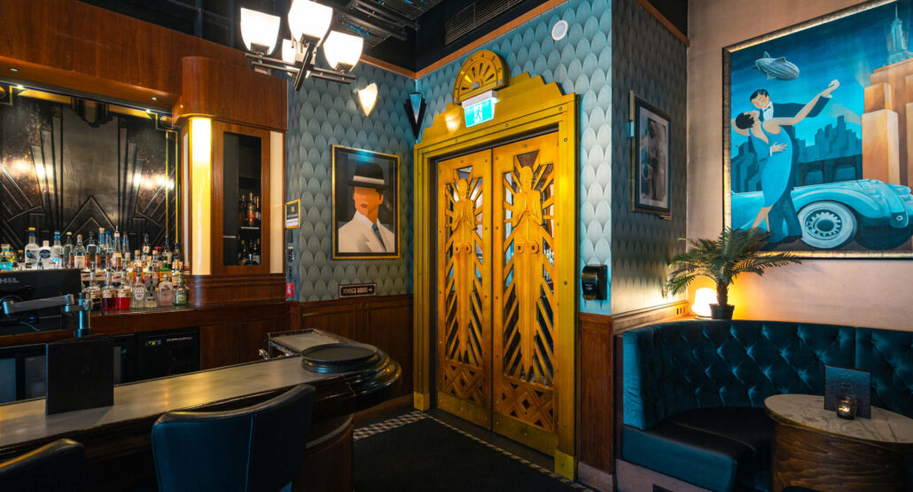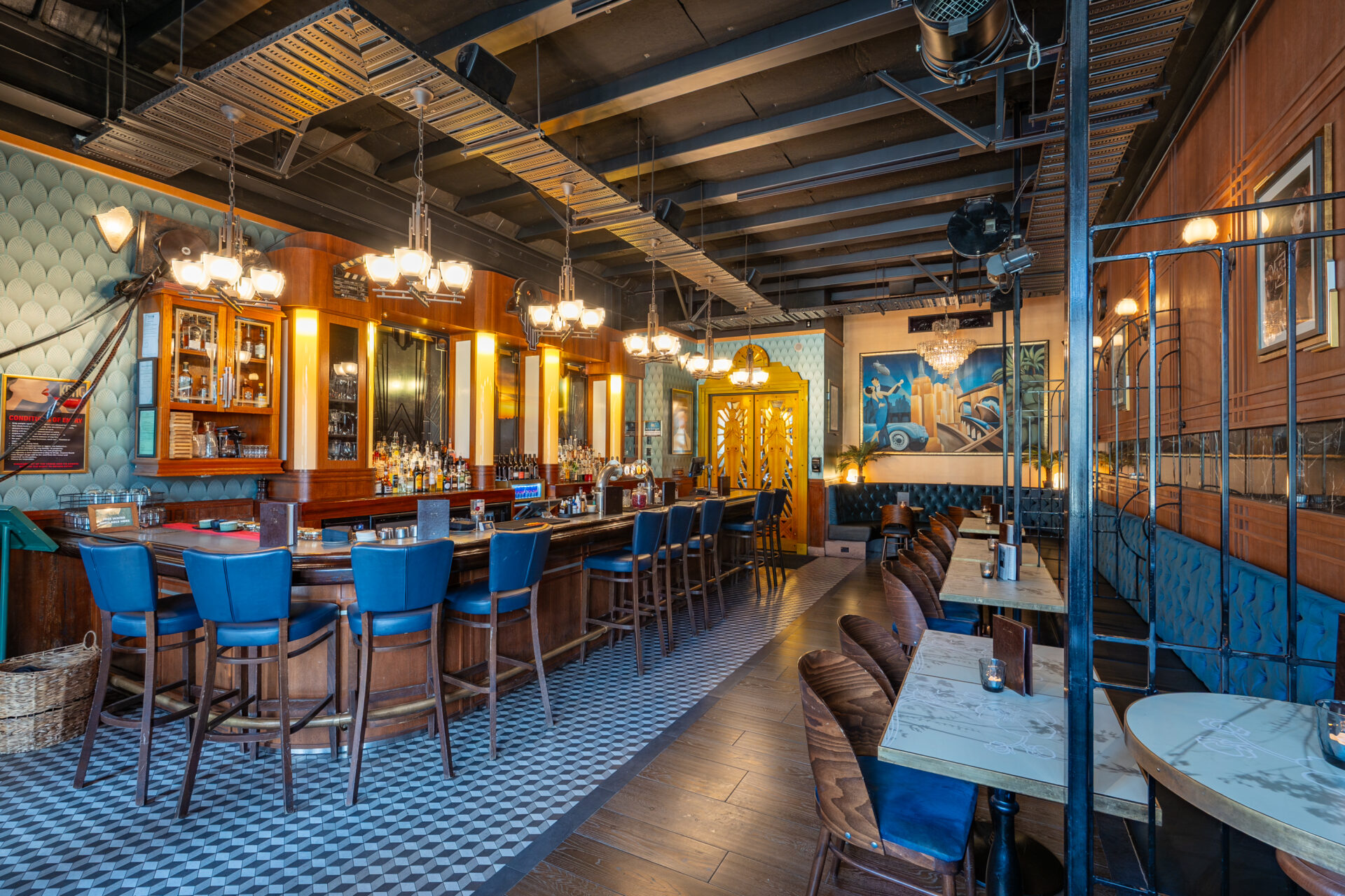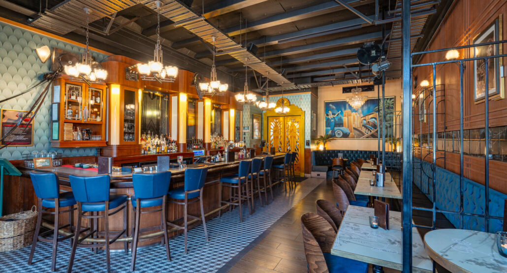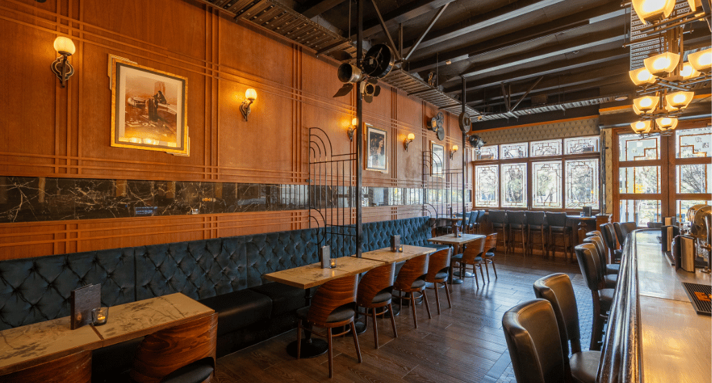 An elegant indoor space with seating for 30 and standing room for up to 50. Surrounded by 1930s-inspired décor, it’s ideal for private dinners, celebrations, or cocktail-style functions in timeless style.