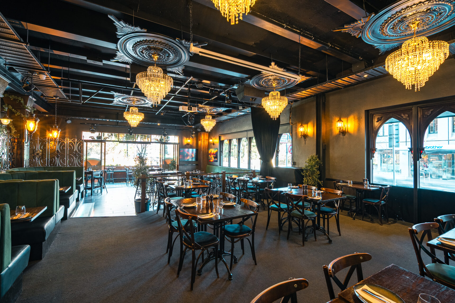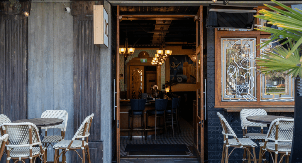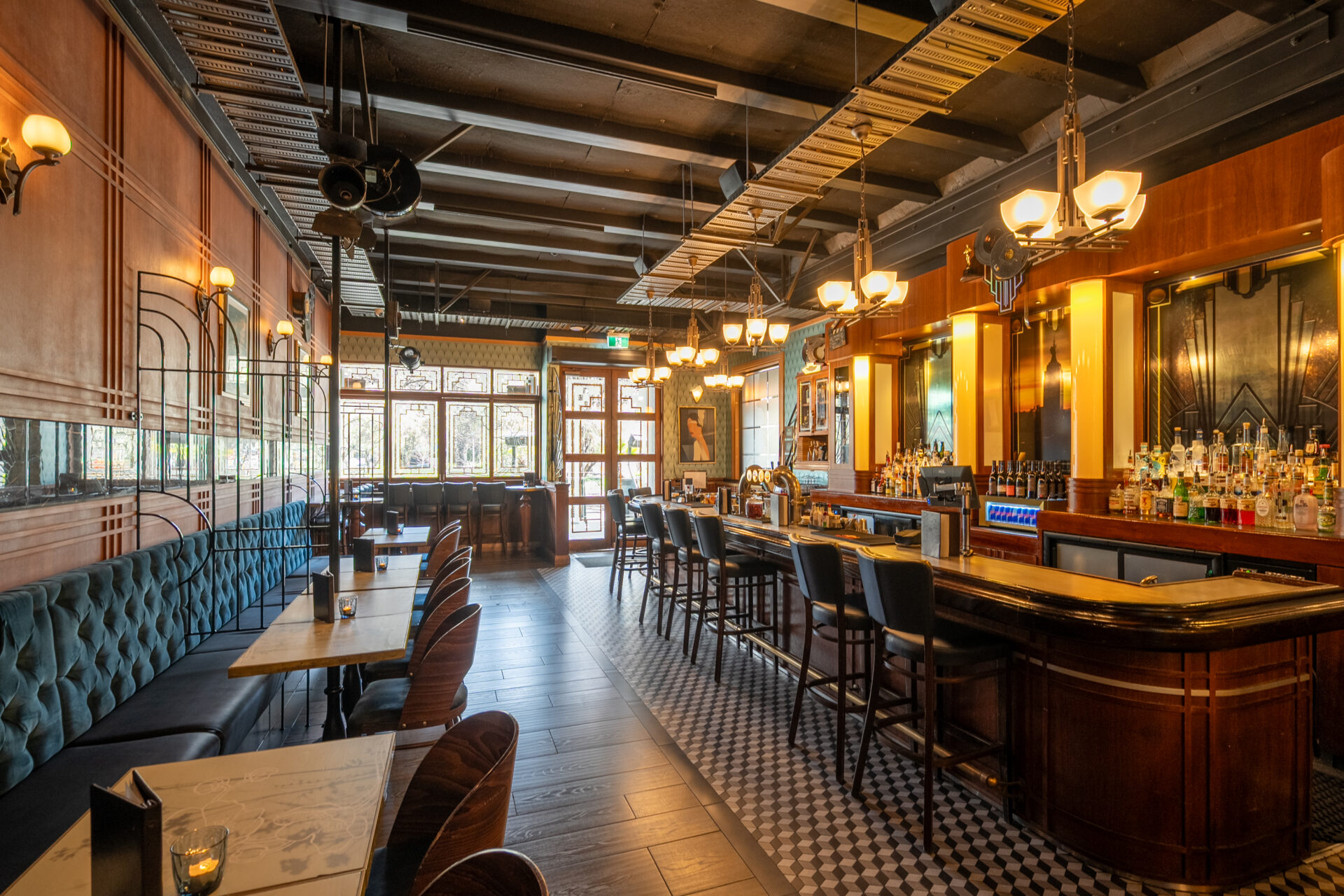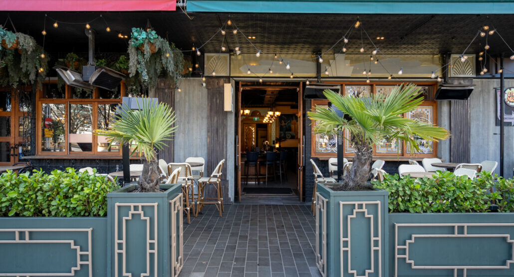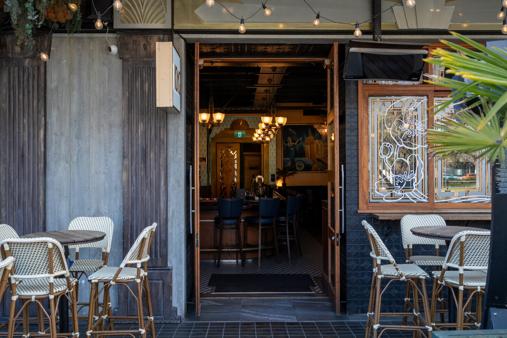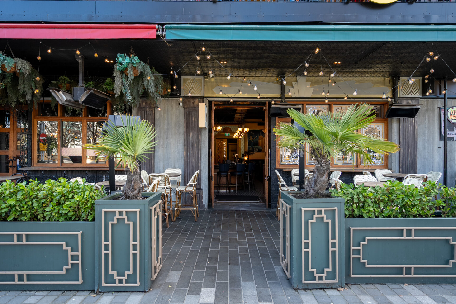 An undercover outdoor area with seating for 24 and standing room for up to 30. Overlooking The Terrace in the heart of the CBD, it’s an ideal spot for relaxed yet stylish gatherings, all with a hint of 1930s glamour.